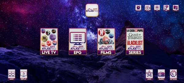 Application Atlas IPTV ONTV V3 pour les appareilles Android, les box tv téléphone, tablette installée notre nouvelle application une interface future et une organisation très sophistiquez pour un zapping plein de puissance et de qualité le meilleur des confort vous attends dans votre salon ou partout ailleurs, cependant vivez le meilleur avec Application Atlas IPTV OTT PREMIUM QUALITY